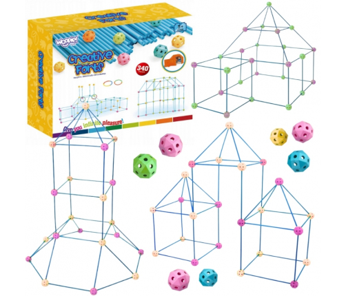 Zestaw Konstrukcyjny od marki WOOPIE stworzy wielkiego konstruktora z Twojego dziecka! Zestaw zawiera 340 el. w tym rurki łączniki i materiał do okrycia konstrukcji. Elementy umożliwiają na połączenie ich w przestrzenną budowlę jak namiot, przykryty materiałem. Zestaw pozwala na kreatywną zabawę w domu jak i na świeżym powietrzu.