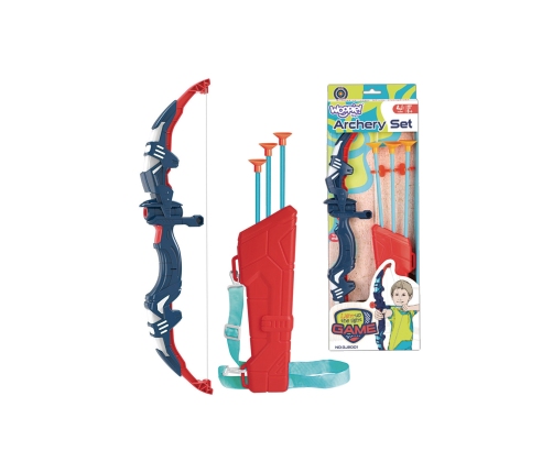 - - zestaw zawiera łuk, kołczan do trzymania strzał wraz z paskiem zakładanym na ramię oraz 3 strzały z przyssawką na końcu,