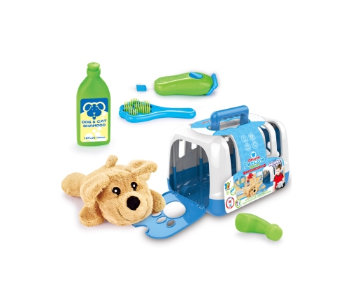 Przenośny Zestaw Małego Weterynarza od marki WOOPIE to idealna propozycja dla wszystkich lubiących zwierzęta i zabawy w odgrywanie ról. Zestaw zawiera 6 elementów, w tym: pluszaka/pieska, transporter, szczotkę, golarkę, szampon oraz dozownik do szamponu. Zestaw pozwoli wyleczyć ulubionego zwierzaka, a przy tym dziecko będzie uczyło się empatii i nabywało umiejętności społecznych. Opieka nad zwierzętami to także nauka odpowiedzialności. Dziecko będzie mogło zabrać i bawić się swoim pupilem wszędzie, dzięki przenośnemu transporterowi z wygodną rączką. Zabawka w weterynarza - odgrywanie ról - pozytywnie wpływa na rozwój dziecka, pobudza wyobraźnię oraz kreatywność.