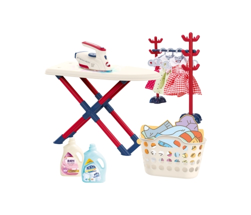Zestaw do Prasowania od marki WOOPIE dostarczy dziecku mnóstwo zabawy w małą gospodynię domową. W zestawie znajdziemy żelazko, deskę do prasowania, kosz na pranie, stojący wieszak, trzy małe sukienki dla lalek oraz dwa opakowania płynu do prania. Żelazko jest zabawką bezpieczną dla dzieci, ponieważ nie nagrzewa się. Zostało ono wyposażona w wiele funkcji, które urozmaicą zabawę: 1 z przycisków znajdujący się na rączce żelazka który po wciśnięciu i trzymaniu odwzorowuje prawdziwe dźwięki prasowania, świecącą lampkę LED oraz efekty dźwiękowe w postaci piosenek. Jest to doskonały zestaw dla dzieci, które uwielbiają naśladować rodziców podczas codziennych czynności.