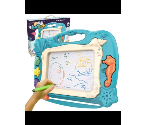 Znikopis Tablica Magnetyczna od marki WOOPIE daje możliwość kreatywnej zabawy na długi czas! Tablica zachęca do pisania i rysowania. Rysowanie pozwoli skoncentrować, wyciszyć i uspokoić Twoje dziecko. Znikopis pozwala na tworzenie nieskończonej ilość obrazków – wystarczy przejechać specjalnym suwakiem, a rysunek zniknie i można rysować od nowa! Zestaw dodatkowo zawiera wygodny długopis oraz stempelki, które urozmaicą dzieło. Tablica posiada wygodny uchwyt, dzięki czemu dziecko może zabrać ją wszędzie. Znikopis rozwinie u dziecka zdolności manualne, wyobraźnie, kreatywność oraz da szansę na rozwinięcie artystycznej strony dziecka!