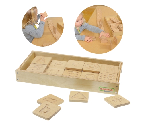 Świetna sensoryczna zabawka drewniana, dzięki której dziecko poprawi rozpoznawanie przedmiotów za pomocą dotyku. Zestaw zawiera 40 grawerowanych płytek z literkami, cyferkami, oraz symbolami. Zabawa polega na dotykaniu płytek i bez użycia wzroku odgadywaniu jaki znak znajduje się na płytce. Na początku zadanie może być trudne, ale z czasem, gdy zmysł dotyku będzie stymulowany, będzie to przychodziło coraz łatwiej.