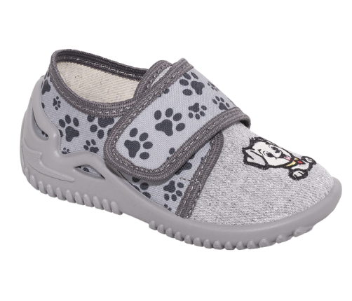 Obuwie dziecięce zapinane na rzep. Wnętrze buta wykonane z naturalnej tkaniny bawełnianej. Usztywniana piętka. Elastyczna podeszwa wykonana z bezftalanowego tworzywa. Buty ozdobione kolorowym haftem. Wkładka wykonana z naturalnej skóry oraz elastycznej pianki. Pianka zawiera węgiel aktywny. Skóra absorbuje nadmiar wilgoci a węgiel aktywny pochłania nieprzyjemne zapachy zapewniając stopie uczucie świeżości.